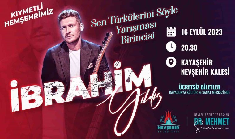 TRT'DE YAYINLANAN “SEN TÜRKÜLERİNİ SÖYLE” ADLI ŞARKI YARIŞMASINDA PERFORMANSIYLA BÜYÜK BEĞENİ TOPLAYAN İBRAHİM YILDIZ, 16 EYLÜL CUMARTESİ AKŞAMI NEVŞEHİR KALESİ’NDE HEMŞEHRİLERİYLE BULUŞUYOR.