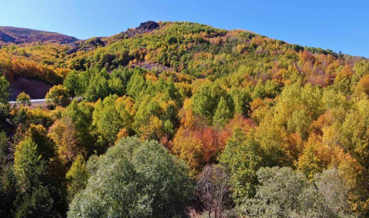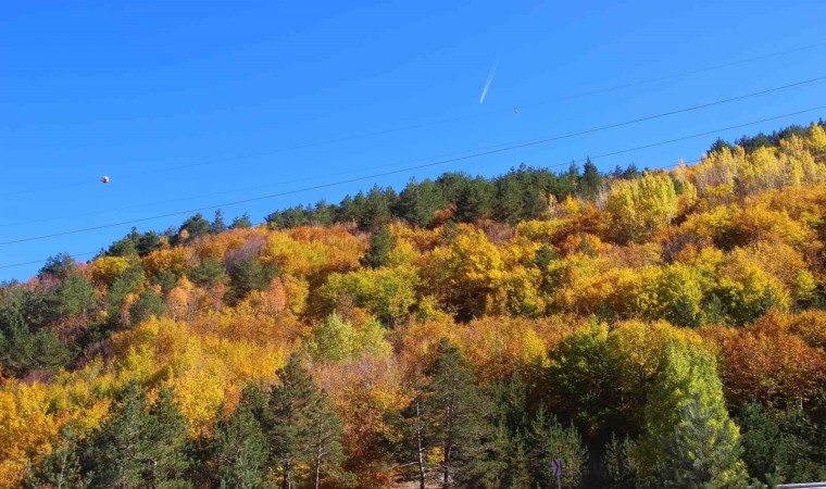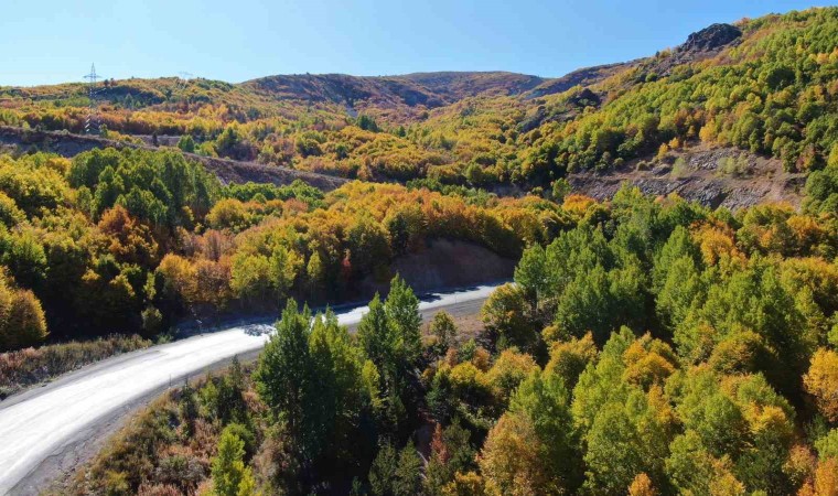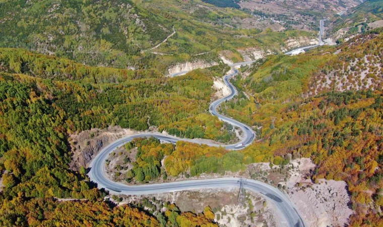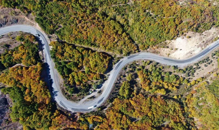 Sonbahar renklerinin hakim olduğu geçit, dron ile görüntülendi.