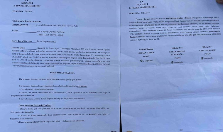 İzmit Belediyesi ile son günlerde çeşitli problemler yaşadığını söyleyen Özdöl, "Bununla alakalı hukuki sürecimiz başladı. Hukuki süreçten sonra her geçen gün problem yaşar olduk. Ticaret hayatımızda hiçbir şekilde siyasi bakmadık. Bu işin çekirdeğinden geldim. Garsonluktan gelip işletmeci oldum. 10 yıldır buradan ekmeğimi kazanıyorum. Hiçbir şey yokken mekanın 4 hafta içinde boşaltılmasına dair tebligat gönderildi. Bunun üzerine belediye yetkilileriyle görüşmeye gittim, herhangi bir sonuç alamadım. Sıkıntılı sürece girince avukat tutup dava sürecini başlattık. İzmit Belediyesi bizi kaymakamlığa şikayet etti. Kaymakamlıktan da işletmemizin mühürlenmesiyle ilgili telefon geldi. Sonrasında tebligat gönderdiler. Biz de kaymakamlığa dilekçemizi yazdık; hukuki sürecin yaşandığını, süreç bitmeden çıkmamızın uygun ve etik olmayacağını dile getirdik. 3 hakimin imzasıyla karar açıklandı. Eylül’ün 5’ine kadar ticari faaliyetlerimizin devam edeceğini belirten resmi karar çıktı" dedi.