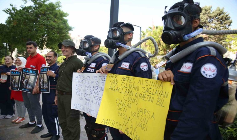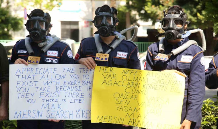 Mersin’in merkez Akdeniz ilçesine bağlı Nusretiye Mahallesi Muhtarlığı’nın gönüllülerden oluşan arama kurtarma ekibi, Türkiye’de özellikle yaz aylarında büyük bir problem olan orman yangınlarına dikkat çekmek için örnek bir proje hazırladı. Cam fanus içerisine yerleştirilmiş çam ağaçlarıyla oksijen maskesi takan gönüllüler, bir ağacın insan üzerindeki olumlu etkilerini vatandaşlara göstermek için kentin en işlek caddelerinde dolaşarak, broşür dağıttı. Gördüklerinde önce şaşıran, ardından ise gerçeğin çok farklı olduğunu gören vatandaşlar, ekibe duyarlılıklarından dolayı teşekkür ettiler.