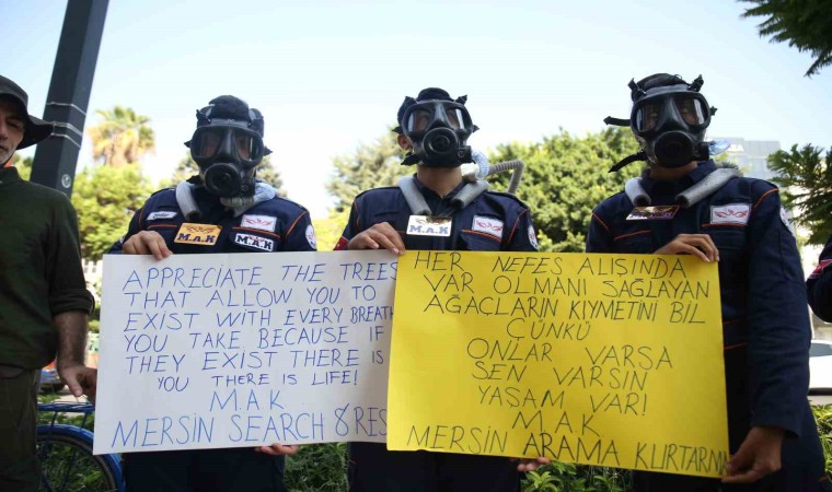 Nusretiye Mahallesi Muhtarı Mehmet Dindar, 2017 yılında arama kurtarma ekibi kurduklarını söyledi. Bu ekibin tamamen gönüllülerden oluştuğunu kaydeden Dindar, "Yıl 2023 olunca biz bunu geliştirelim istedik. Mahallemizin gençleriyle bir araya gelerek Mersin Arama Kurtarma Derneği’ni kurmak istedik. Burada da bu projeye imza atmak istedik. Özellikle küresel iklim değişikliğinin son zamanlarda zirve yaptığı bu dönemlerde biz de orman yangınlarına, sellere karşı bir farkındalık oluşturalım istedik. Son dönemde havalar o kadar ısındı ki, deniz suları bile 20 derecelerin üzerine çıktı. İster istemez nem olayı olarak kışın bunun bize dönüşü çok ciddi sel felaketleriyle olacak. Biz de buna bir ön hazırlık yapmak amacıyla duyarlılık oluşturmak için böyle bir projeye imza attık. Arkadaşlarımızın sırtında birer fanus, içlerinde çam ağaçları var. Bir ağacın bir insan üzerindeki etkisini, havaya vermiş olduğu oksijeni ve aynı zamanda sera gazını azalttığını göstermek amacıyla bu projeyi gerçekleştirdik. Çok güzel de olumlu yönde tepki aldık. Bu konuda Mersin halkına çok teşekkür ediyoruz. Bundan sonra ümit ediyorum ormanlarımıza, yeşil alanlarımıza daha dikkat ederiz. Fazlasıyla ağaç ekmemiz gerekiyor. Çünkü küresel iklim değişikliğiyle başa çıkmanın en önemli yolu ağaç ekmektir" dedi.