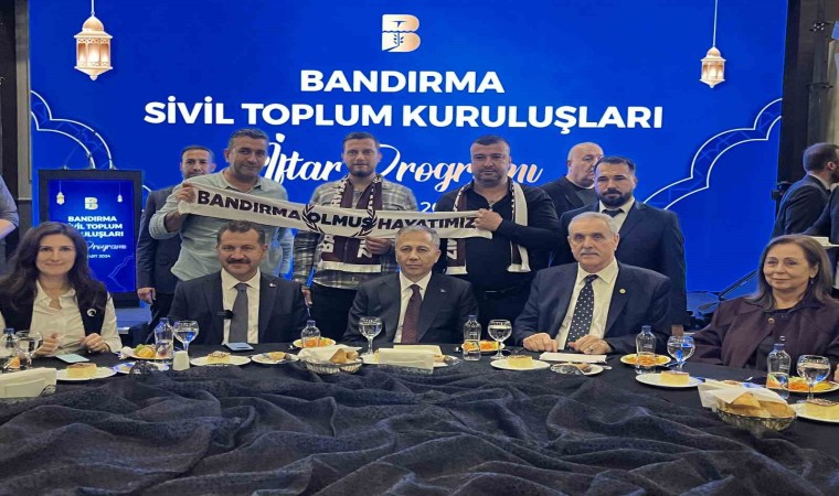 İçişleri Bakanı Ali Yerlikaya, Balıkesir’de gerçekleştirdiği ziyaretleri Bandırma’daki iftar programıyla noktaladı. Balıkesir Büyükşehir Belediyesi tarafından organize edilen iftarda Balıkesir Büyükşehir Belediye Başkanı Yücel Yılmaz, AK Parti Bandırma Belediye Başkan Adayı Cemal Öztaylan, muhtarlar ve sivil toplum kuruluşları yer aldı.