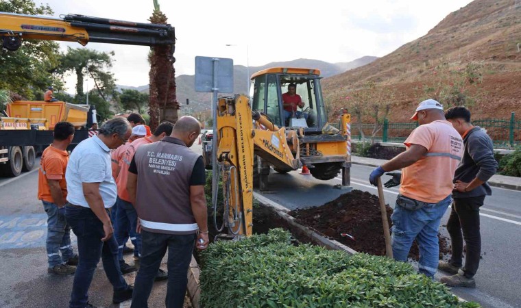 Marmaris İçmeler Mahallesi Atatürk Caddesi’ne 23 palmiye ağacı daha dikilmesi için çalışma başlatıldı.