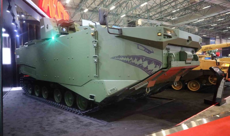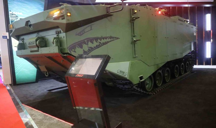 ZAHA’nın denize girdiğinde 7 not hızla ilerlediğini vurgulayan Altınışık, “Araç denize girdiğinde saatte 7 not hızda seyredebiliyor. Karada da çok üstün bir hareket kabiliyeti aynı zamanda çok uzun yüksek bir menzile sahip. Yani hem denizde hem karada kullanılıyor. Genelde yanlış anlaşılıyor. Sorular geliyor mesela işte ne kadar derinlikte yüzebilir? Öyle bir durum yok. Bunlar sınırsız derinliklerde, denizlerde böyle açık okyanusta dahil yüzebiliyor. Çünkü bunları gemiden ufuk çizgisinden atıyorlar ve ufuk çizgisinden su jetleriyle artık bir gemi gibi düşünün. Zırh koruması altında kendi imkanlarıyla ilerliyor. Karaya çıkıyor ve karadan ilerleyişine devam ediyor. Envantere girdi. Deniz kuvvetlerimizin 4 değişik konfigürasyonu var. Bu aracın işte personel taşıyıcı, kurtarma aracı, komuta kontrol aracı işte istihkam aracı gibi. Bu şu an görmüş olduğunuz personel taşıyıcı konfigürasyonu bu fuarla. Aynı zamanda da aracın görev ekipmanları da yeni teknolojilerle donatıldı. Bunlar da yurtiçi kabiliyetlerle geliştirilen, yani Türkiye’deki birçok savunma, diğer savunma şirketlerimizin geliştirdiği elektronik ve görev ekipmanlarıyla bu araç donatılmış oldu. Araç karada iken palet tahrikiyle paletleri var. Bakın aşağıda operet tarihiyle hareket eder. Suya yaklaştığında tuvalet tarifleri suya girer ve artık gücü su jetlerine, yani arkada 2 adet su jeti var. Onlar artık itki sistemini onlar sağlamaya başlar ve o 2 adet su jetiyle suda ilerler” dedi.