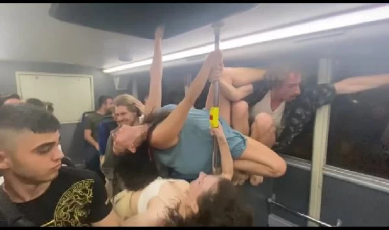 Gruptakiler otobüste direk dansı da yaptı. Otobüse binen bazı yolcular da eğlenceye katıldı. Koltukların üzerine çıkan, direkleri kullanarak da dans eden gruptakiler kameralara yansıdı. Otobüsten inen gençler, cadde üzerinde dansa devam etti. (DHA)