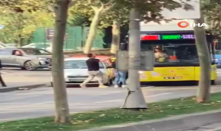 Beyoğlu’nda İETT otobüsünün içerisindeki kişiyle konuşmak isteyen bir şahıs otobüsün önünü aracıyla kesti. İETT otobüsünün önünü kestikten sonra kapıların açılmasını isteyen şahıs, eline telefon alan İETT otobüs şoförünün telefonunu elinden alıp otobüste bulunan bebek arabalı bir kadını indirerek kendi aracına bindirdi. Hem şoföre hem de yolculara dehşet anlarını yaşatan şahısın o halleri cep telefonu kamerası ile görüntülendi.