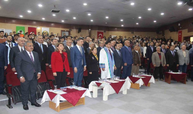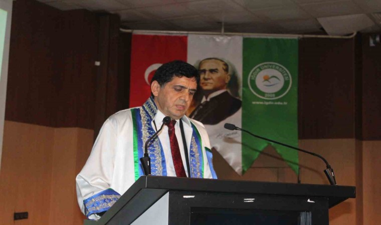 Karaağaç Kampüsü 15 Temmuz Şehitleri Konferans Salonu’nda düzenlenen tören, saygı duruşunda bulunulması ve İstiklal Marşı’nın okunması ile başladı. Törende bir konuşma yapan Iğdır Üniversitesi Rektörü Prof. Dr. Mehmet Hakkı Alma, göreve geldiği yıldan itibaren üniversitenin eğitim, öğrenci ve akademisyen yönünde büyük bir ivme yakaladığını belirterek, “Tarihçe olarak 95’te Kafkas Üniversitesine bağlı bir meslek yüksek okulu olarak başladı. 2006 yılında da Ziraat Fakültesi kuruldu. Hemen akabinde de 2 sene içinde üniversite kuruldu. Iğdır Üniversitesi 2022’de de ihtisas üniversiteye doğru adım atmıştır. Şu anda da Türkiye’de 22 ihtisas üniversitesi var. Bizimki ’Katma Değeri Yüksek Tarımsal Ürünler’ üniversitesi oldu. Iğdır’a yakışır bir şekilde tarım üstü bir üniversite. Ben hep derim bir buçuk milyon dönüm arazisi olan bir yer Fransa, Belçika, Hollanda kadar tarım arazimiz var. Bütün Türkiye’yi besleyecek yerlere sahibiz. Ama kıymet bilinmiyor. Bunu hep dile getiriyorum bunun yüzde 65’i atıl durumdadır. İnşallah bununla ilgili çalışmayı da düşünüyoruz” dedi.