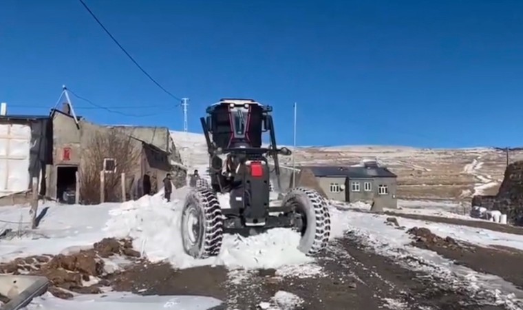 Iğdır İl Özel İdaresi karla mücadele ekipleri yoğun mesai harcayarak kapanan köy yollarını açıyor.
