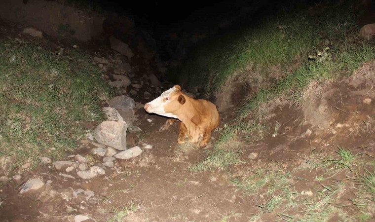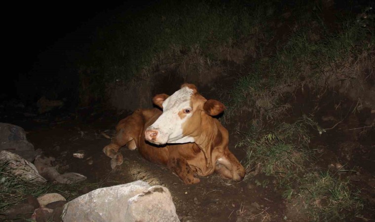 Çiftçi Yakup Pektür, "Dağdan dere yatağına yuvarlanan ineğimizi kurtarmak için özel idareyi aradık, gecenin vaktinde geldiler, bize yardımcı oldular sağ olsunlar" dedi.
