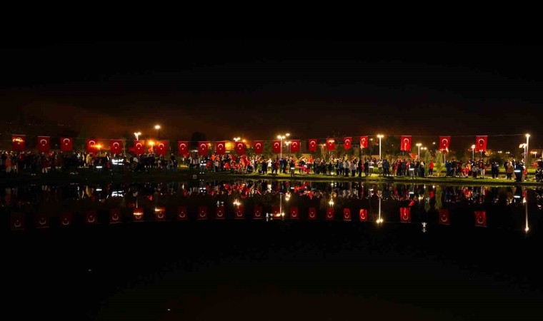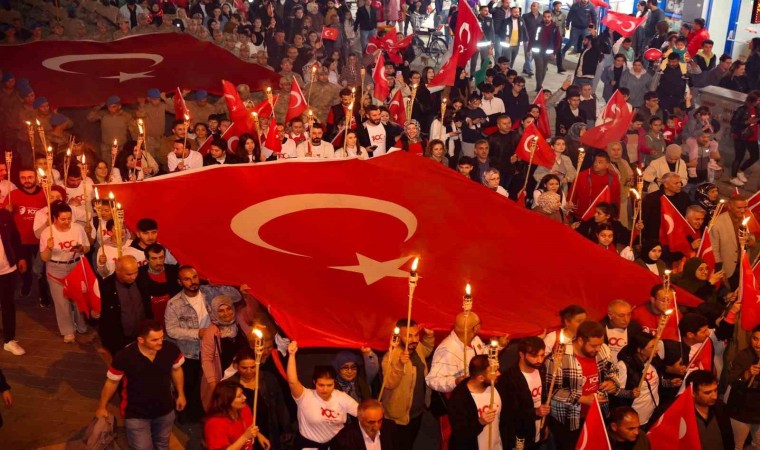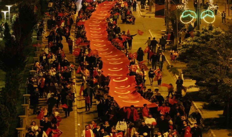 Cumhuriyet’in 100. yılı kutlamaları çerçevesinde Iğdır’da düzenlenen fener alayında, vatandaşların 100 metre uzunluğunda 12 adet Türk bayrağı ile 3 kilometrelik bir yol kat etmesiyle gerçekleşti.