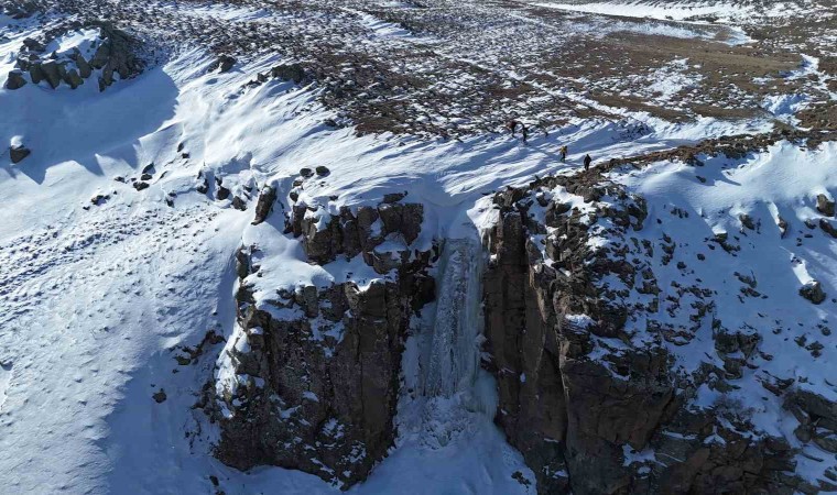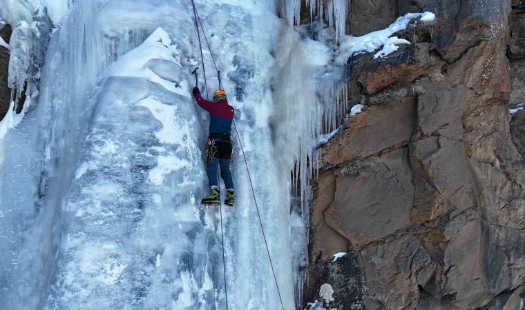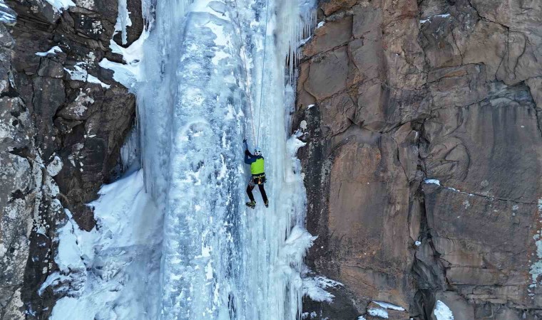 Iğdır’ın Tuzluca ilçesinde, bölgenin en etkileyici doğal güzelliklerinden biri olan Gurgure Şelalesi’nin buz sarkıtları, dağcılar için yeni bir iniş ve tırmanış parkuru oluşturdu. Yaklaşık 20 metre yüksekliğindeki donmuş şelale, kış mevsiminde şelalenin etrafında oluşan buz sarkıtlarıyla adeta bir buz iniş ve tırmanışı cennetine dönüştü. Bölgedeki dağcılar, kış şartları altında ilk kez bu doğal oluşumlara iniş ve tırmanmayı başardı. Kar ve soğuk havaya rağmen, dağcılar zorlu şartlarda Gurgure Şelalesi’nin buz sarkıtlarına güvenli bir şekilde inerek ve tırmanarak, dağcılık sporuna olan ilgiyi artırmayı hedefliyor. Şelale, özellikle doğa sporları ve macera seven dağcılar için tercih edilen bir alan haline gelmeye aday. Tuzluca ilçesinde doğa sporları ve rehberlik yapan Caner Kaya rehberliğinde şelalenin olduğu yere giden Muhammed Akkuş, Alpay Korkmaz ve Arif Güneş hazırlıklarını yaptıktan sonra vida yardımı ile buzdan delikler açtılar. Güvenliklerini sağlayan üçlü daha sonra şelaleden iniş yaptılar. Yaklaşık 20 metre yüksekliğindeki donmuş şelaleden inen dağcılar daha sonra zorlu bir tırmanış yaparak hedeflerine başarı ile ulaştılar. Rehber Caner Kaya vatandaşların şelaleye özellikle ilkbahar mevsiminde yoğun ilgi gösterdiğini belirterek; “ Iğdır’ın Tuzluca ilçesine bağlı Yukarı Civanlı ile Uğruca köyleri üst tarafında Gurgure şelalesi yer alıyor. Arkadaşlar burada bir buzul tırmanışı yaptılar onlara rehberlik yaptım” dedi.