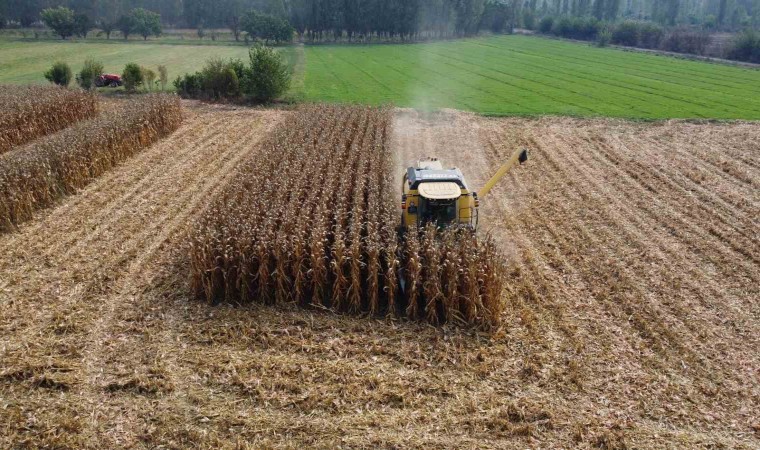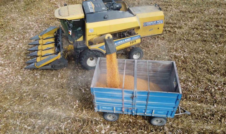 Tarlalardaki dane mısır hasadı havadan da görüntülendi.