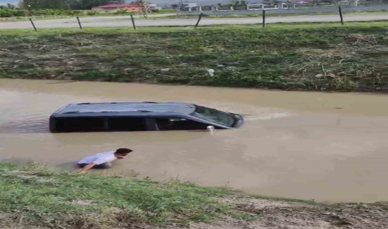 Iğdır’da sürücüsünün direksiyon hakimiyetini kaybettiği araç su kanalına uçtu, kazada ölen ve yaralanan olmadı.