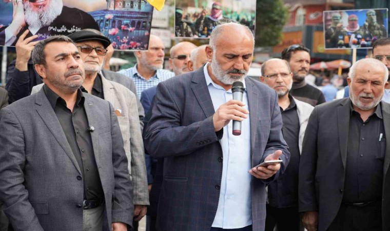 Iğdır’da Zübeyde Hanım Bulvarında öğle namazından sonra toplanan vatandaşlar İsrailli ve ABD’yi kınayan sloganlar atarken, Nasrullah ve Heniye’nin resimlerini taşıdılar.