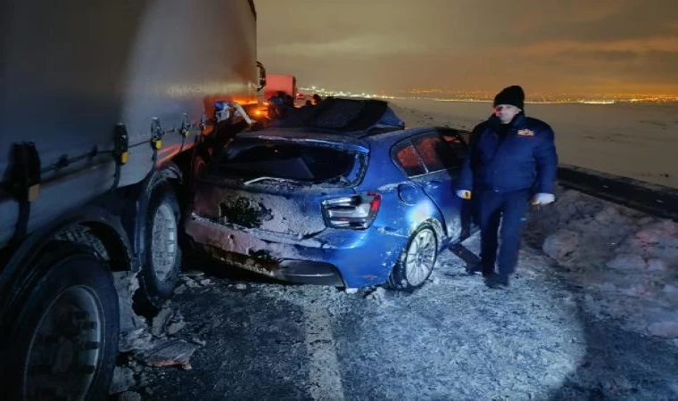 Özkan AYDIN/ IĞDIR, (DHA)- IĞDIR’da kar yağışı nedeniyle kayganlaşan yolda sürücüsünün kontrolünden çıkan otomobil, önündeki TIR'a çarptı. Kazada otomobil sürücüsü hayatını kaybederken, araçta bulunan bir kişi yaralandı.