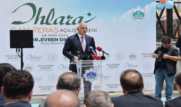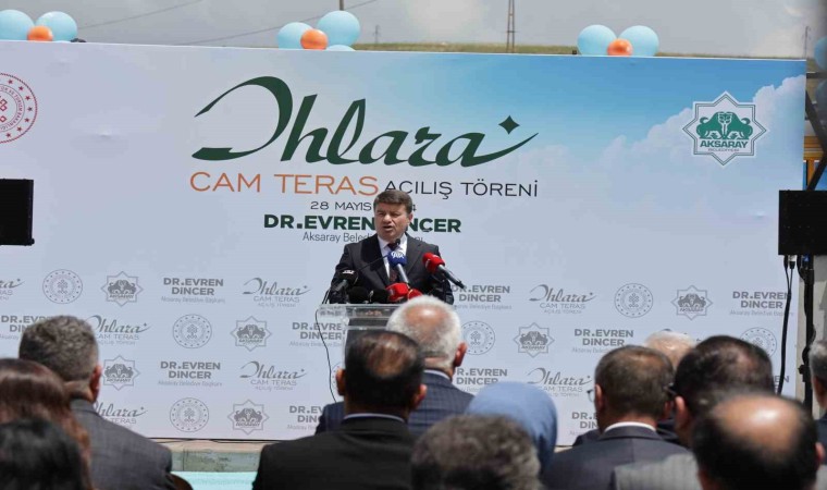 Aksaray Belediye Başkanı Evren Dinçer ise Aksaray’ın Kapadokya’nın merkezinde bulunan ve bölge itibari ile de çok çok önemli turizm alanlarına sahip bir il olduğunu ifade ederek, "Aksaray, 11 bin yıllık tarihi geçmişe sahip bir vilayetimiz. Bu alan da Dünya’nın en büyük 2. kanyonu Ihlara Vadisi. Hasan Dağı’mız, Tuz Gölü’müz ve birçok tarihi ve kültürel oluşumlarımız Aksaray sınırları içerisinde mevcut. Aksaray’da turizmi canlandırmak, turizme katkı sağlamak, bu potansiyeli açığa çıkarmak adına Aksaray Belediyesi olarak önemli bir turizm yatırımını faaliyete geçirmiş bulunmaktayız. Ihlara Vadimizin en güzel bölgelerinden bir tanesinde ve vadi tamamen en güzel şekilde seyir halinde görülebilen bir alana Cam Teras projemizi hayata geçirmiş bulunmaktayız. İçerisinde kafeteryamızın bulunduğu, sosyal alanlarımızın bulunduğu Cam Terasımız inşallah şehrimize, Ihlara kasabamıza hizmet etmiş olacak. Turizm için bölgemize gezmeye gelen, bölgemizi tanımaya gelen yerli ve yabancı tüm turistlerimize hizmet edecek nitelikte bir tesisimiz. Hayırlı olmasını temenni ediyorum” diye konuştu.