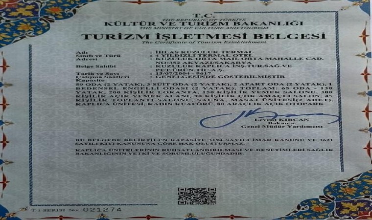 Kültür ve Turizm Bakanlığı’nın incelemelerinin ardından 4 yıldızlı termal otel belgesi alan ve tabiatın tüm güzelliklerini bir arada sunan İhlas Kuzuluk Termal Otel’in ‘Sürdürülebilir Turizm Sertifikası’ güncellendi.