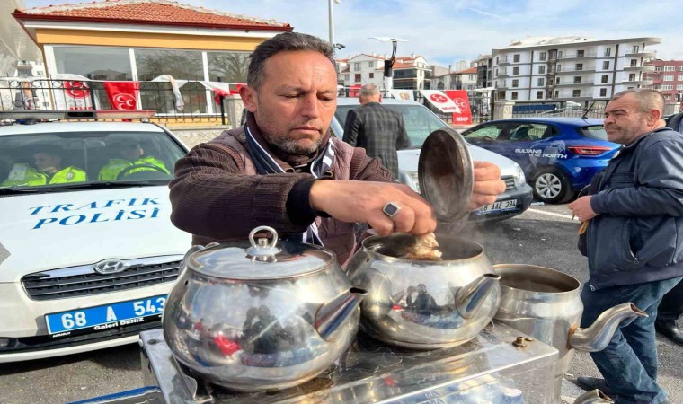 Aksaray’da ortaokula ve üniversiteye giden 2 çocuğunun devletten alması gereken bursu almayıp ihtiyaç sahibi başka bir öğrenciye gitmesi için çay satan EYT emeklisi Eyüp Yaşar, hafta sonları çocuklarının harçlığı için çalışıyor.