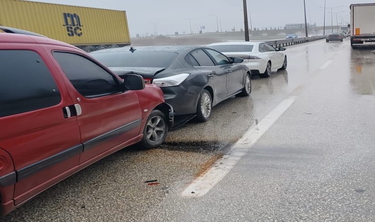 İnegöl’den Bursa’ya seyir halinde olan sürücü Ali K. yönetimindeki 34 LU 8251 plakalı kamyon, önünde seyreden Niyazi B. yönetimindeki 34 NSG 93 plakalı otomobile arkadan çarptı. Arkadan gelen sürücü Barış M. yönetimindeki 16 AGE 944 plakalı tır da kamyona çarparak durdu. Kaza sonucu tırın sürücüsü yaralandı.