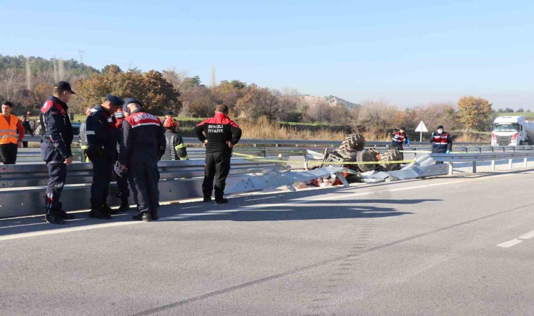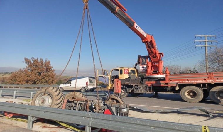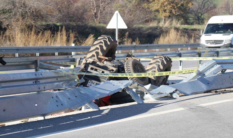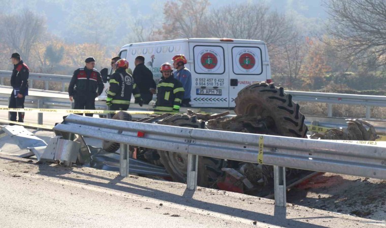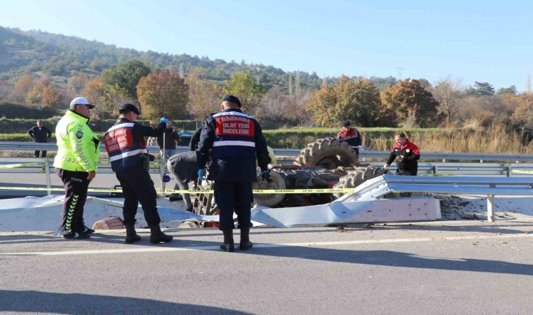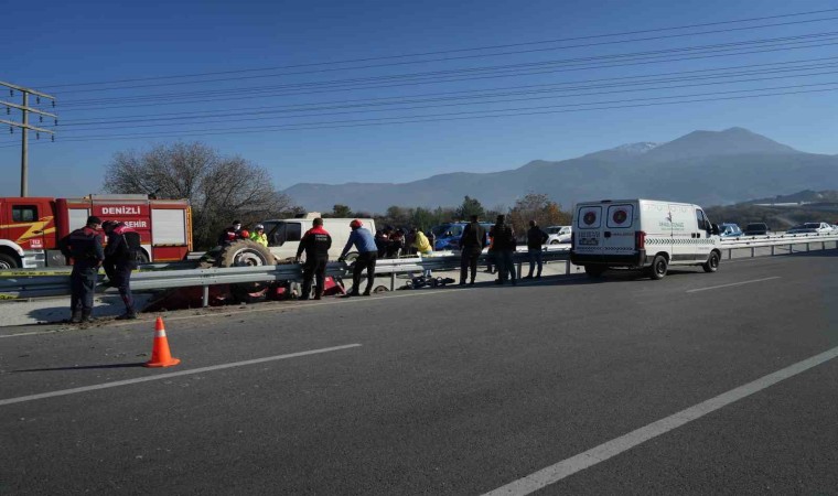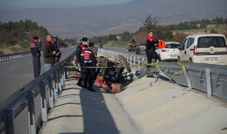 Denizli’nin Pamukkale ilçesinde seyir halindeyken kontrolden çıkarak iki bariyer arasına devrilen traktörün sürücüsü, olay yerinde feci şekilde hayatını kaybetti.
