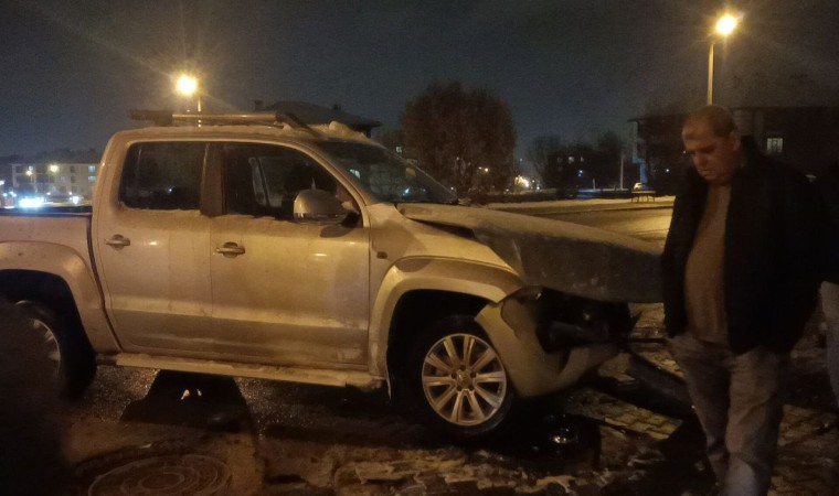 Bolu’da iki caddenin kesiştiği yolda pikap ile hafif ticari araç çarpıştı. Çarpışmanın etkisiyle hafif ticari araç apartmanın bahçesine savrulurken, kazada şans eseri yaralanan olmadı.