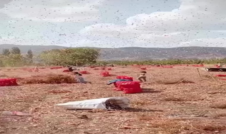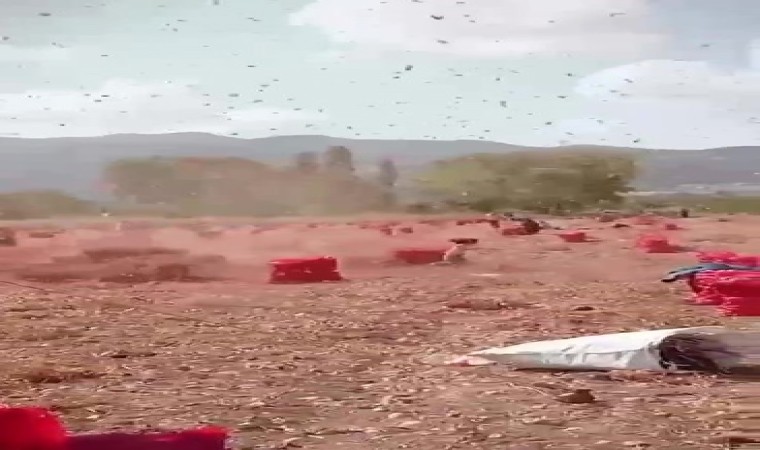 Soğan tarlasında hızla dönen hortum önüne çıkan her şeyi sürükledi. Mevsimlik tarım işçileri ile ailelerinin de bulunduğu alanda O anda iki kız çocuğu da hortumun arasında kaldı. Çocukların hızla dönen hortumun arasından güçlükle kurtuldu.