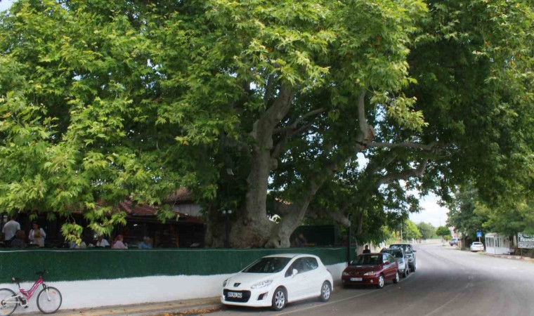 Vizede oturan Manaz, gelip geçerken ağacın atında sürekli oturduklarını belirterek, “Vizeliyim, gelip geçerken hep uğrarız, çayımızı içeriz. Görüyorsunuz hava ne kadar sıcak fakat ağacın altında serin bir hava var yani serinletiyor. Biraz ileride sıcaktan bunalıyorsunuz ama burası gayet serin” diye konuştu.