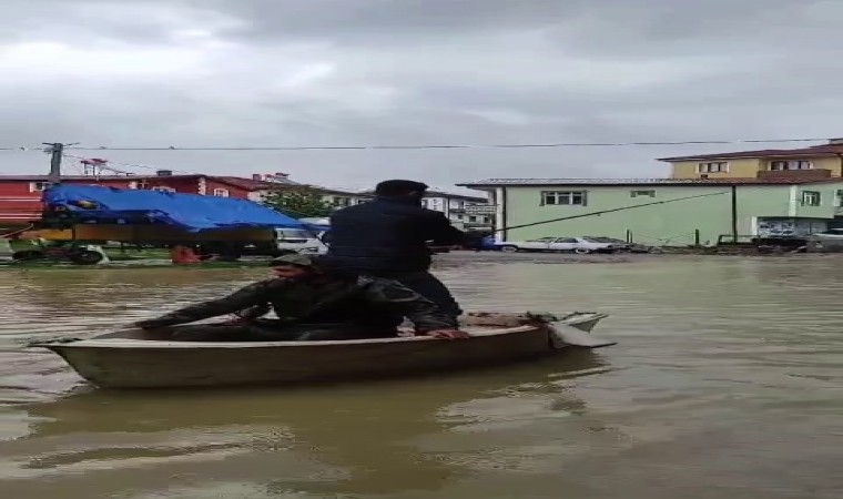Sakarya’da etkisini gösteren şiddetli yağış sonrasında Kaynarca ilçesinde bir vatandaş sandal kullanırken, diğeri olta atıp balık tutma mizanseni yaptı. İlginç görüntülerin ortaya çıktığı anlar ise cep telefonu kamerasına yansıdı.