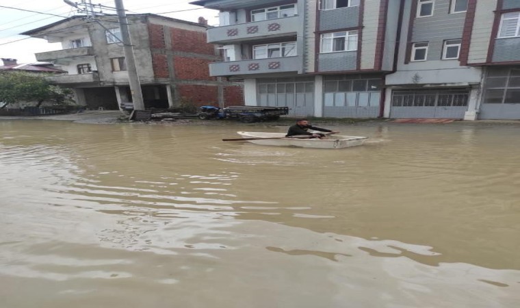 Meteoroloji Genel Müdürlüğü tarafından yapılan uyarıların ardından Sakarya’da etkisini gösteren sağanak yağış hayatı olumsuz etkilerken, Kaynarca ilçesinde de sağanak sebebiyle bazı cadde ve sokaklar sular altında kaldı. İki kişi adeta göle dönen sokakta sandal kullanıp oltayla balık tutma mizanseni yaptı. Ortaya renkli görüntülerin çıktığı anlar ise cep telefonu kamerasıyla kayda alındı. Görüntülerde, bir kişinin sandal ile göle dönen sokaktan dolaşması, diğer bir kişinin de sandal üstünden olta atarak balık tutmaya çalışması yer alıyor.