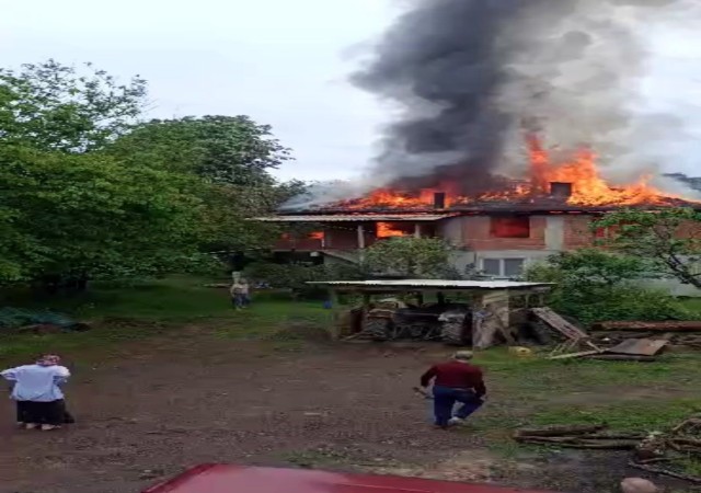 Bu arada, evin alevlere teslim olduğu anlar, olayın tanıkları tarafından cep telefonu kamerasıyla kaydedildi.