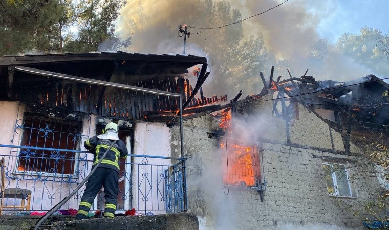 Karabük’te alevlere teslim olan iki katlı müstakil ev kullanılmaz hale gelirken yangın ormanlık alana sıçramadan söndürüldü.