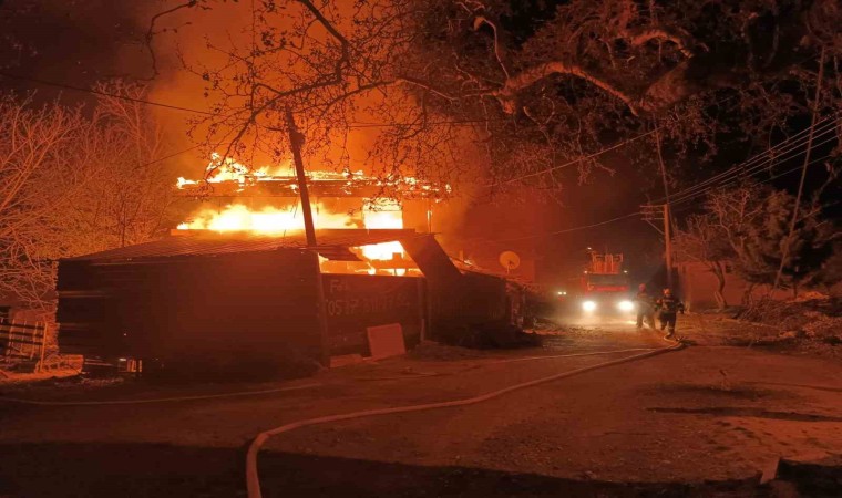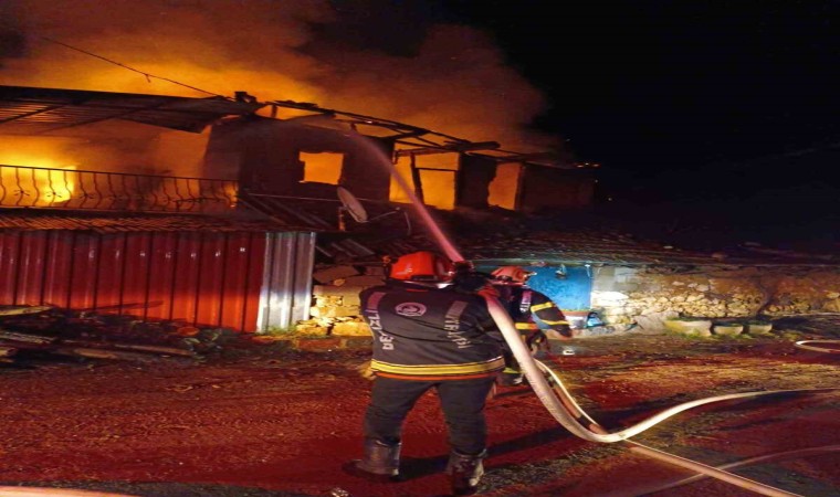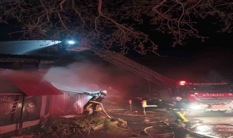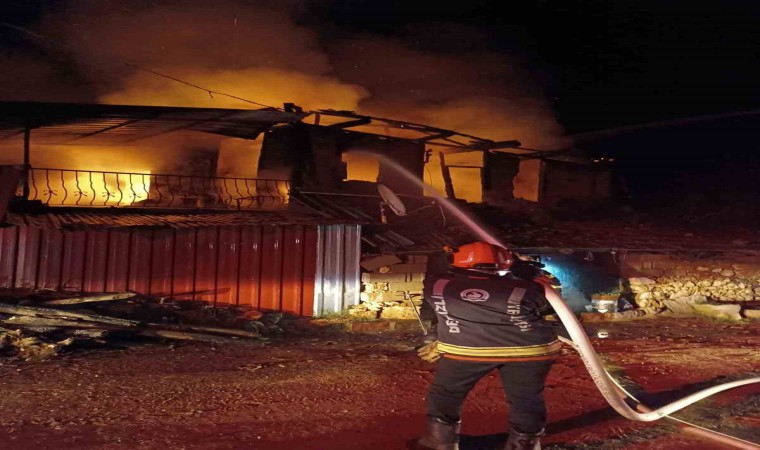Denizli’de gece saatlerinde iki katlı binada çıkan yangın geceyi aydınlattı.
