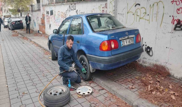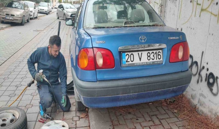 Denizli’de kimliği belirsiz kişiler iki sokakta park halindeki araçların lastiklerine zarar verdi. Sabah saatlerinde duruma fark eden araç sahipleri neye uğradığını şaşırdı.