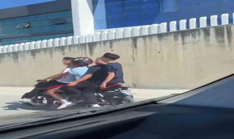 Bursa’da motosiklet ile seyahat etmek isteten bir grup genç, iki tekerlekli araca 4 kişi binip yola çıktı. Trafikte ne kendi, ne başkanlarını düşünen gençler, kilometrelerce ilerledi. Yürekleri ağza getiren görüntüler trafikteki bir başka sürücünün amatör kamerasına yansıdı.