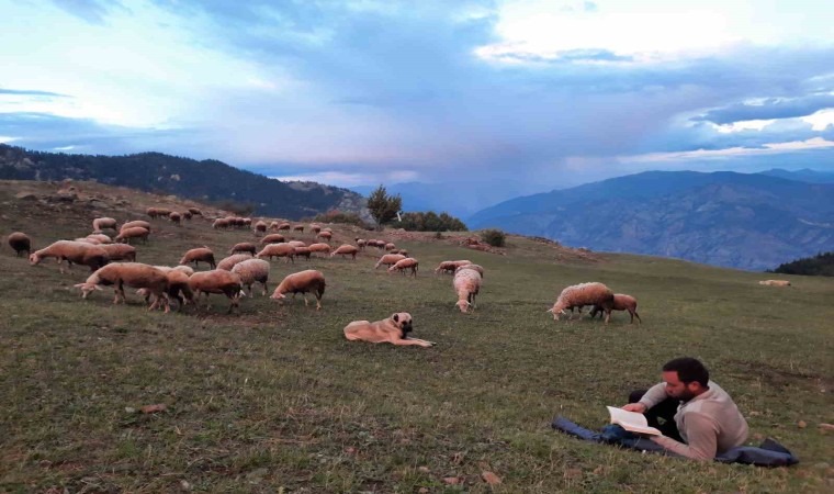 İlçeye bağlı Çevreli Köyü’ndeki 2 bin 100 rakımlı Çamlıbel Yaylası’nda koyunlarını otlatan genç çoban, kaymakam olma hayalinden vazgeçmedi. Mustafa Özer, hem sürüsünü otlatıyor hem de kaymakamlık sınavlarına hazırlıklarına devam ediyor.