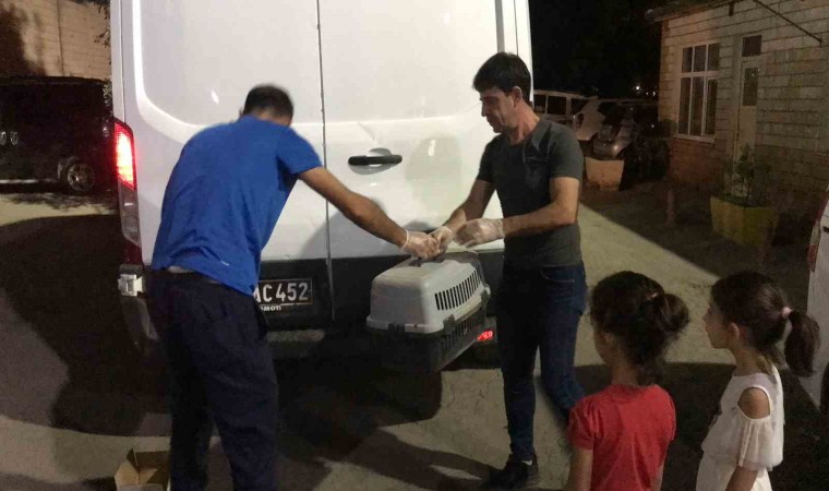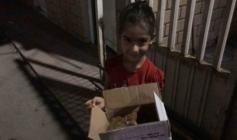 Baba Selman Tür, kızlarıyla birlikte yavru kediyi kutuya koyarak tedavi edilmek üzere Batman Belediyesi Veteriner İşleri Müdürlüğüne götürdü.