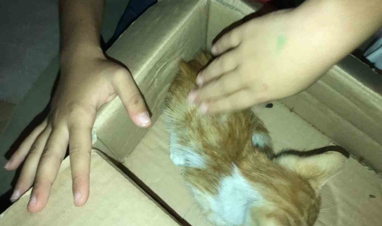 Dün akşam saatlerinde bahçede oyun oynayan ikiz kardeşler Eylül Hazan ile Derya Deniz Tür, duvar dibinde çalılıklar arasında yavru bir kedi fark etti. Kediyi çalılıklardan çıkaran kardeşler, iki gözünün de kör olduğunu ve kaçmadığını fark etti. İkizler, kendi bisküvilerini suda ıslatıp yavru kedinin karnını doyurup su içirtti.