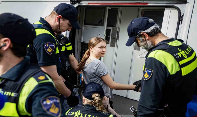 İsveçli iklim aktivisti Greta Thunberg, Hollanda’nın Lahey kentinde fosil yakıt sübvansiyonlarına karşı düzenlenen protestoda iki gözaltına alındı.