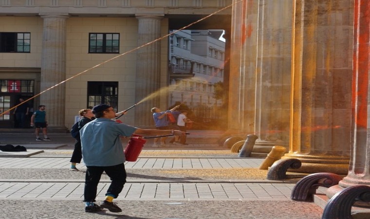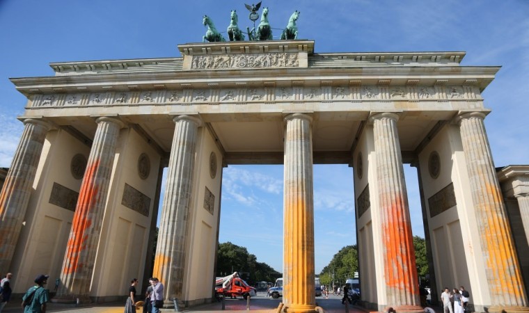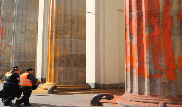 İklim aktivistleri, tarihi yapıları hedef almaya devam ediyor. Letzte Generation (Son Nesil) adlı çevreci grubun üyeleri, Almanya’nın başkenti Berlin’de bulunan tarihi Brandenburg Kapısı’na boyalı saldırı düzenledi. Aktivistler, tarihi kapının sütunlarını sprey boyalar ile turuncu ve sarıya boyayarak, fosil yakıt kullanımının 2030 yılına kadar durdurulması yönündeki taleplerini dile getirdi.