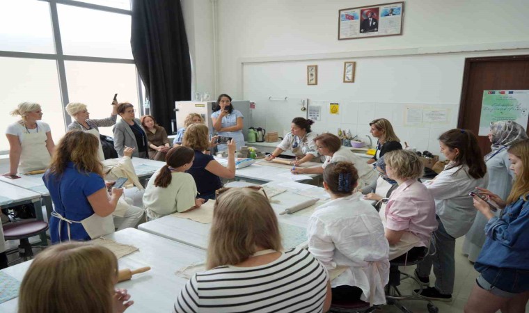 Polonla ve Kuzey Makedonya’dan gelen temsilciler, Kastamonu Üniversitesi’nde yürütülen proje çerçevesinde iklim değişikliğine dikkat çekmek amacıyla seramik ve ipek kumaşlara ekolojik baskı yapıldı.