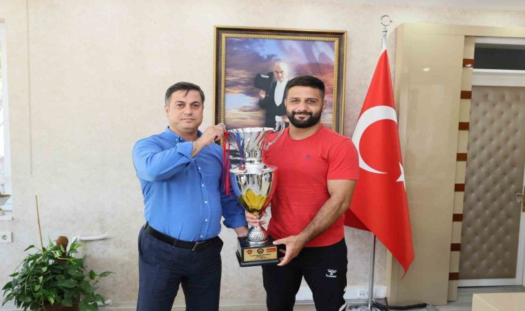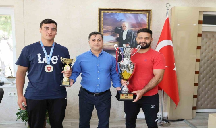 Manisa Gençlik ve Spor İl Müdürü Yunus Öztürk, Edirne’de düzenlenen 663. Tarihi Kırkpınar Yağlı Güreşleri’nde Başpehlivan üçüncüsü olan Manisalı güreşçi Serhat Gökmen ile Balıkesir’de gerçekleştirilen 64. Kurtdereli Mehmet Pehlivan Yağlı Güreşleri’nde Deste Büyük Boy kategorisinde ikinci olan güreşçi Melih Özdemir’i makamında ağırlayarak tebrik etti.