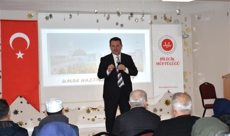 Diyanet İşleri Başkanlığı organizasyonuyla umre vazifesini yerine getirmek üzere Bilecik’ten kutsal topraklara gidecekler için düzenlenen eğitim semineri ile umreciler bilgilendirildi. Kayıboyu Camii Toplantı Salonu’nda düzenlenen program, Şerifpaşa Camii İmam Hatibi Adil Yücel’in Kur’an-ı Kerim tilavetiyle başladı. Programda açılış konuşması gerçekleştiren Bilecik İl Müftüsü Ahmet Dilek, umrecilere tavsiyelerde bulundu.