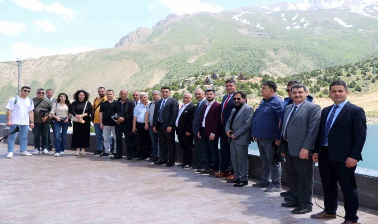 Ergan Dağı Kayak Merkezinde kısa sürede yapılan ve yapımı devam eden bungalov konaklama yerleri, çevre peyzaj düzenlemeleri ile restoran ve kafe hizmeti verecek mekanlar gazetecilerden tam not aldı.