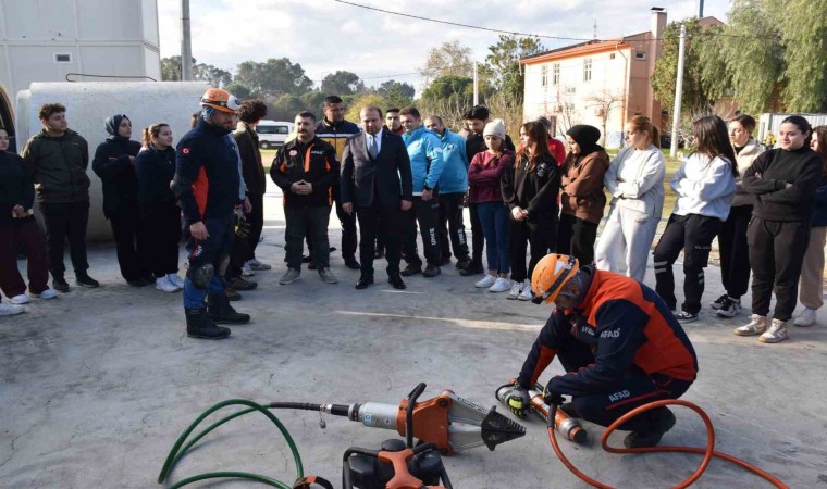 Aydın İl Sağlık Müdürlüğü koordinasyonunda Aydın İl Afet ve Acil Durum Müdürlüğü, Kızılay Aydın Şubesi ve Adnan Menderes Üniversitesi işbirliği ile Adnan Menderes Üniversitesi’nde eğitim gören geleceğin ambulans ve acil bakım teknikerlerine (paramedik) yönelik olarak AFAD ekipman tanıtımı, UMKE araç ve gereçlerinin tanıtımı, 112 Acil Sağlık Hizmetleri’nin travma vaka yönetimi, olay yeri yönetimi ve vaka senaryoları üzerine eğitim ve tatbikat yapıldı. Eğitim ve tatbikat alanını ziyaret eden İl Sağlık Müdürü Dr. Eser Şenkul, Aydın İl Afet ve Acil Durum Müdürlüğü, UMKE ve Acil Sağlık Hizmetleri personellerinden verilen eğitim ve tatbikat ile ilgili bilgi alarak, öğrencilere başarılar diledi.