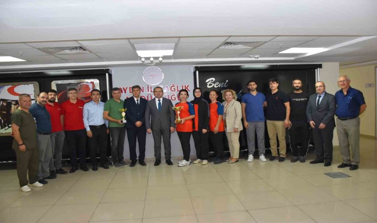 Aydın İl Sağlık Müdürü Eser Şenkul, Cumhuriyetin 100. yılı etkinlikleri çerçevesinde Gençlik ve Spor Bakanlığı tarafından Türkiye genelinde düzenlenen Kamu Spor Oyunları’nda derece alan Aydın Devlet Hastanesi Masa Tenisi Takımı ve İl Sağlık Müdürlüğü Voleybol Takımı’nı ağırladı.