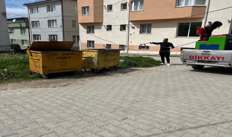 Bilecik’in Söğüt ilçesinde çöp konteynerlerinde ve caddelerde ilaçlama çalışmaları devam ediyor.