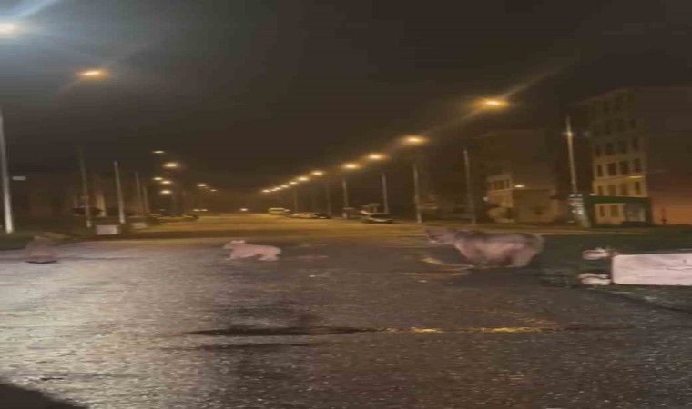 İlçe merkezine inen anne ayı ile 2 yavrusu kamerayla yakalandı