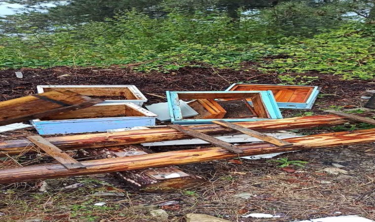 Kastamonu’nun İnebolu ilçesinde merkeze kadar inen ayı, arı kovanlarını parçaladı.