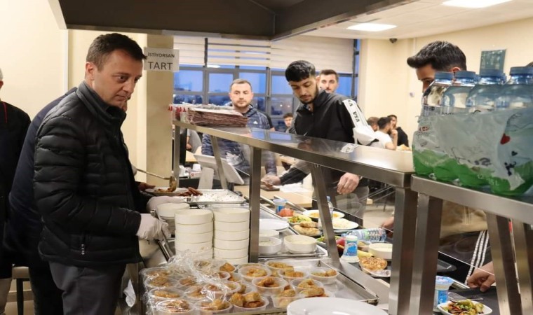 KYK’daki iftar programına katılan İlçe Kaymakam Hicabi Aytemür ile Belediye Başkanı H. İbrahim Şaltu, öğrencilere yemek servisi yaptı. Hep birlikte iftar yapılmasının ardından Belediye Başkanı Şaltu, öğrencilerle yakından ilgilenerek problem ve taleplerini dinledi. Çay ikramının ardından program sona erdi.