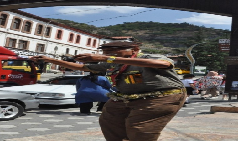 Mudurnu’nun Hüsamettin Dere köyünde ikamet eden 68 yaşındaki Durmuş Demirtaş, kendine özgü kıyafeti ve eğlenceli halleriyle ilçenin neşe kaynağı oldu. Bir elinde teyp, diğer elinde şimşir kaşığı ile Mudurnu’yu sokak sokak gezen Demirtaş, yöresel oyunlar oynayarak, vatandaşlara neşe saçıyor. İlçe merkezine gelen yerli ve yabancı vatandaşlar ise zaman zaman Demirtaş’a eşlik ederek, bol bol hatıra fotoğrafı çektiriyor.